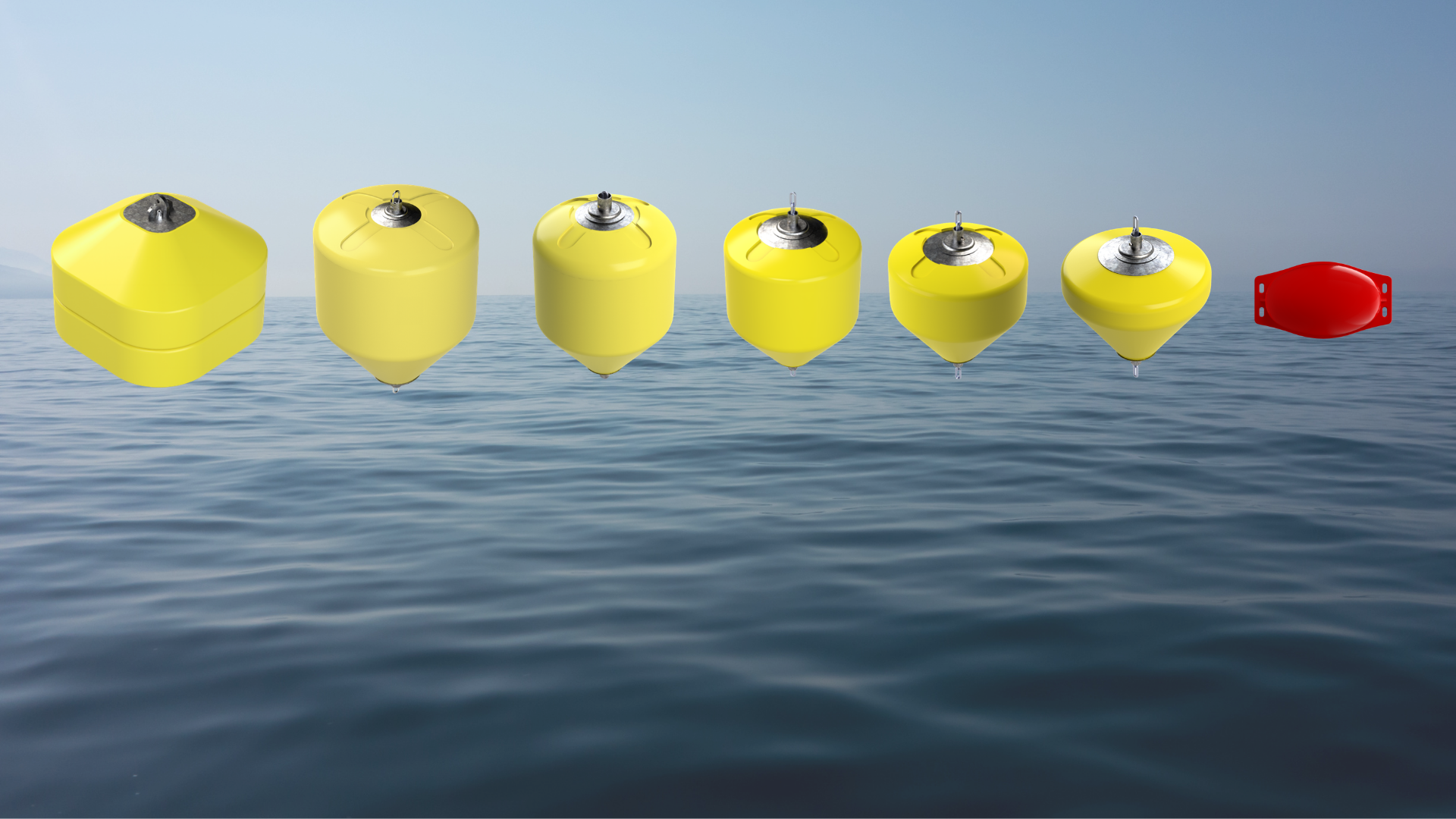 LDPE malzemeden üretilen ve iç kısmı polistiren köpük (EPS) ile doldurulan şamandıralar, açık deniz operasyonları için tasarlanmıştır. Özellikle balık çiftliklerinde güvenle kullanılabilen bu şamandıralar, dayanıklı yapıları sayesinde uzun ömürlü performans sunar. Gövdenin merkezinde tek parça polietilen boru bulunur ve bu borunun içinde boydan boya uzanan sıcak daldırma galvaniz kaplı bir zincir yer alır. Şamandıranın üst ve alt uçları galvaniz kaplı metal tapalarla sabitlenmiş olup, üst kısmında çekme işlemlerini kolaylaştıran metal halka, alt kısmında ise mooring sistemine bağlantı sağlayan fırdöndü bulunmaktadır.